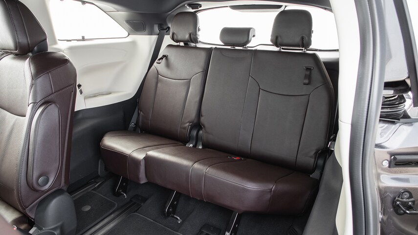 Сиденья второго ряда в Toyota Sienna тоже очень комфортны, хотя они и не обладают электроприводом и подставками для ног. Как второй, так и первый ряд достаточно просторны, места для ног хватает. Попасть на третий ряд несложно, нужно лишь найти рычаги на сиденьях второго ряда. Не хватает здесь только камеры для наблюдения за детьми в задних рядах. Во всех остальных минивэнах она имеется.
