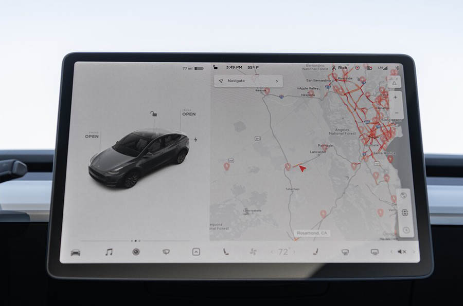 В Model Y, как и во всех Tesla, дисплей используется не только для таких привычных действий, как навигация и управление музыкой, но и для регулировки боковых зеркал и рулевой колонки, а также для поиска ближайшей зарядной станции. Наличие такого большого количества опций на одном дисплее может отпугнуть некоторых, но на самом деле интерфейс дисплея очень прост и отлично продуман. Найти необходимую опцию не составит труда, а само программное обеспечение работает шустро.