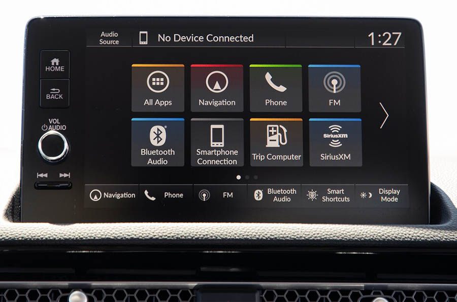 Дисплей информационно-развлекательной системы претерпел изменения в лучшую сторону в обеих моделях, но ни один пока нельзя назвать примером для подражания. Приложения на дисплее Honda размещены в виде плиток, саму систему можно достаточно тонко настроить под свои предпочтения, но, чтобы с этим разобраться, придется потратить немного времени. Приятно, что Honda вернула некоторые физические кнопки для самых используемых функций и приложений. В Toyota физических кнопок еще больше, а вот интерфейс непосредственно дисплея, несмотря на заметные улучшения, все еще выглядит и ощущается устаревшим.
