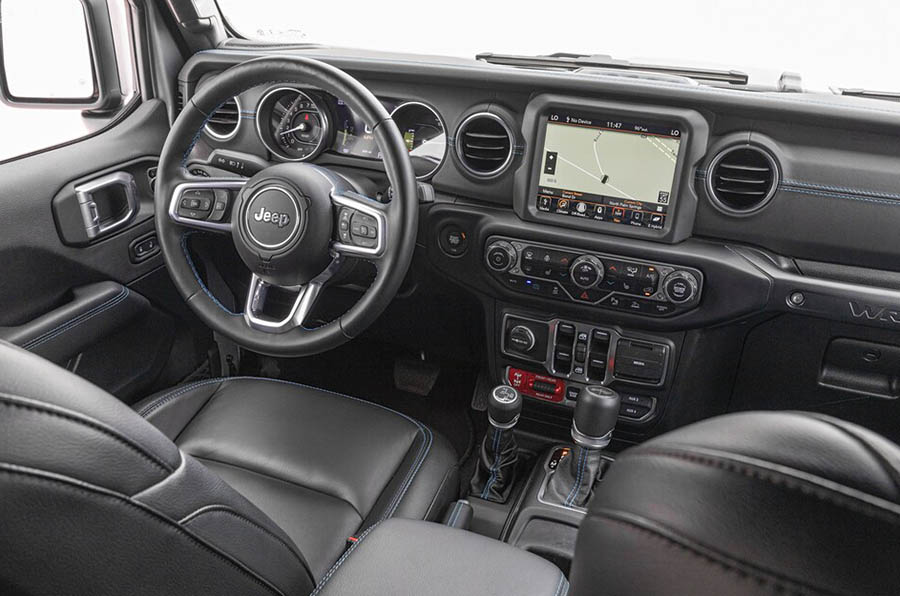 Несмотря на менее вместительные отсеки для мелочей в Jeep Wrangler Rubicon 4xe и основной дисплей с меньшей диагональю (8.4-дюйма), все необходимые элементы в салоне легкодоступны и просты в использовании. Механическая ручка переключения передач и олдскульный ручной тормоз позволяют делать на Wrangler то, что просто невозможно на Bronco с его электронным стояночным тормозом. Важная информация на приборной панели Wrangler считывается проще. Приборная панель в Bronco выглядит чрезмерно приукрашенной и слишком современной, в то время как во Wrangler она кажется не такой перегруженной и показания его аналогового тахометра воспринимаются легче, чем у цифрового аналога в Bronco.