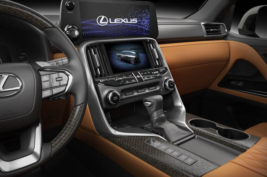 На передней панели салона LX600 находится сразу три дисплея: 8-дюймовый дисплей приборной панели, 12.3-дюймовый дисплей информационно-развлекательной системы и отдельный 7-дюймовый дисплей с настройками климат-контроля и других систем автомобиля. Ожидается поддержка Apple CarPlay и Android Auto, вероятно даже с возможностью беспроводного соединения. Беспроводная зарядка будет доступна опционально. По словам Lexus, любители качественного звука смогут опционально оснастить LX600 системой объемного звука Mark Levinson с 25-ю динамиками вместо стандартной аудиосистемы.