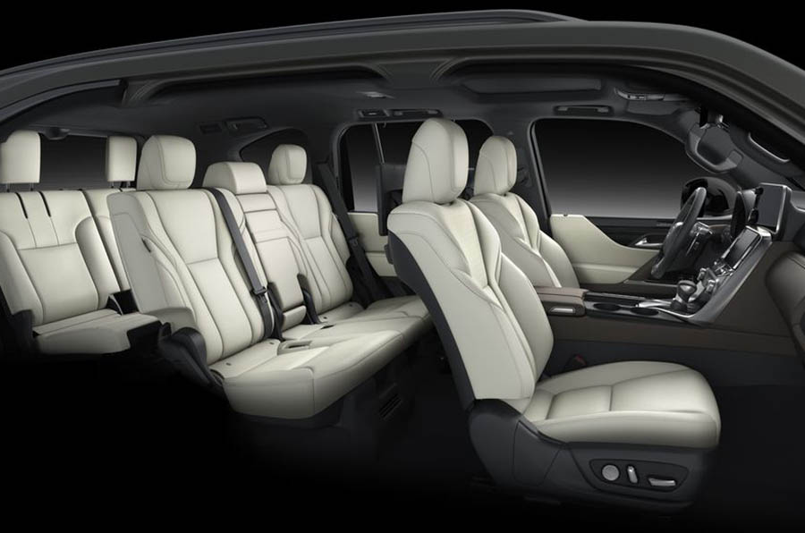 Новый LX600 получил современный и роскошный салон. Широкая центральная консоль между передними сиденьями, стеганая кожаная обивка, обтянутая кожей передняя панель, элементы отделки из дерева и хрома делают атмосферу в салоне уютной. Комплектация Standard обладает двумя рядами сидений, рассчитанными на пять человек, комплектации Premium, Luxury и F Sport имеют три ряда сидений, что увеличивает вместимость до семи. Топовая комплектация Ultra Luxury отличается четырехместной компоновкой. Сзади установлено два “капитанских” кресла, разделенных центральной консолью, имеются два дисплея для пассажиров и площадка для беспроводной зарядки. Сами сиденья заднего ряда созданы для максимального комфорта пассажиров.